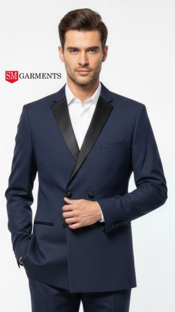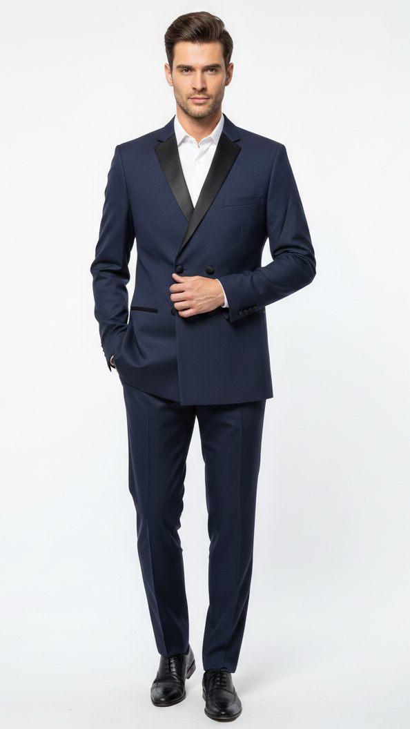 ایک چیکنا کے ساتھ تیار کیا گیا یہ ایک عصری سلہوٹ پیش کرتا ہے جو آرام پر سمجھوتہ کیے بغیر آپ کے جسم کو بڑھاتا ہے۔ حیرت انگیز بحریہ کے نیلے رنگ کے تانے بانے کو ایک پرتعیش سیاہ ساٹن شال لیپل سے خوبصورتی سے متصادم کیا گیا ہے، جس میں کلاسیکی نفاست کا ایک لمس شامل ہے۔ اس کے ممتاز ڈبل بریسٹڈ ڈیزائن میں پالش والے بٹن شامل ہیں، جو کسی بھی تقریب میں کمانڈنگ کی موجودگی کو یقینی بناتے ہیں۔
