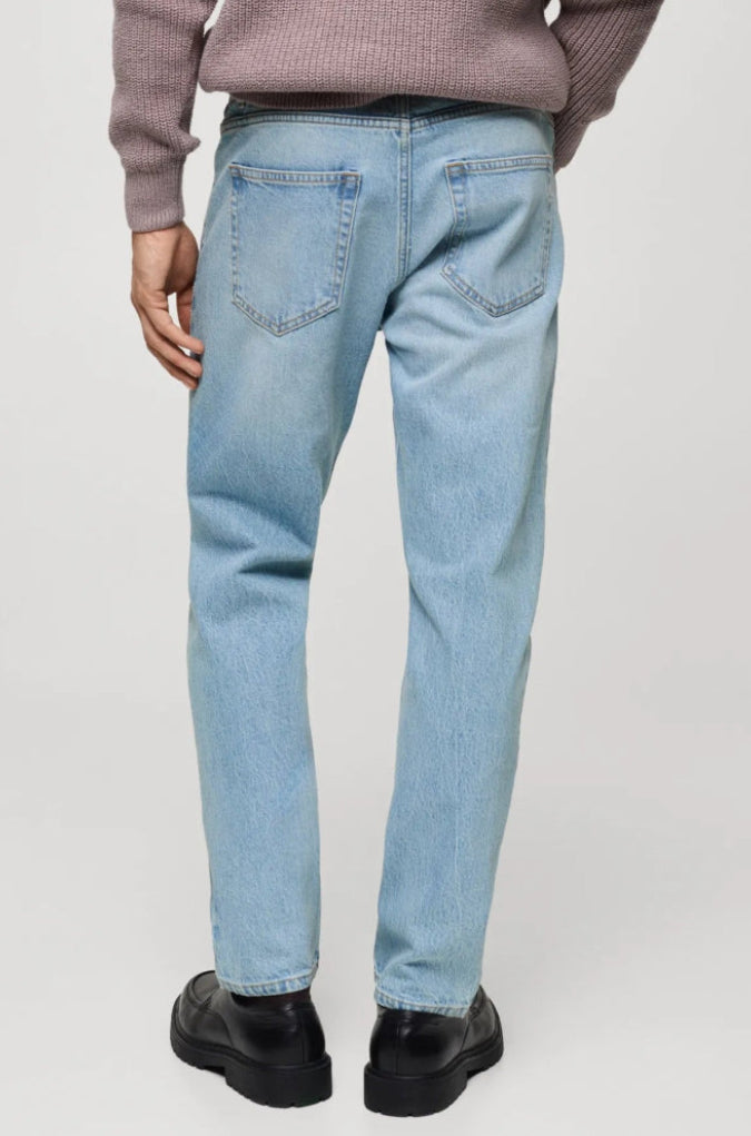 ٹاپرڈ فٹ: اوپر کا چوڑا کٹ جو گھٹنے سے ٹخنوں تک تنگ ہوتا ہے۔ سوتی کپڑا۔ ڈینم جینس اسٹائل۔ ہلکا دھونا۔ بیلٹ لوپس۔ زپ اور ایک بٹن باندھنا۔ دو طرفہ جیبیں۔ سکے کی جیب۔ پیچھے دو پیچ جیب.