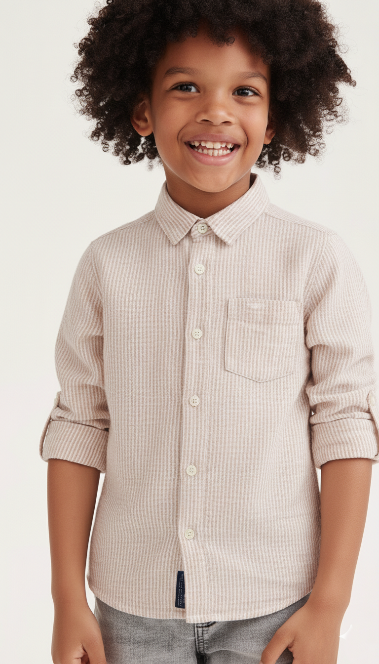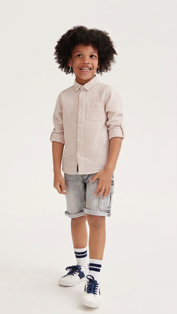 میرے CHICCO بچوں کی جیب کے ساتھ دھاری دار لینن کی قمیض