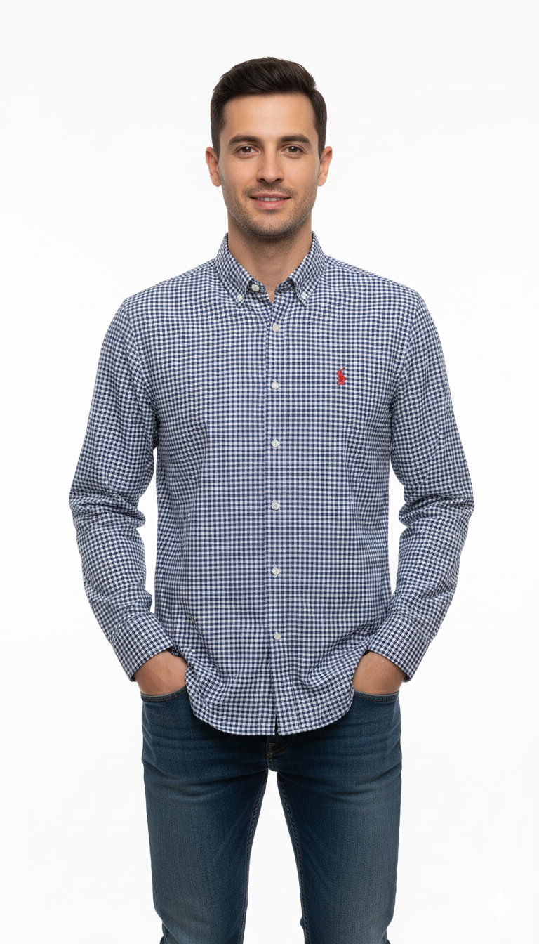 مینز سلم مائیکرو چیک لوگو شرٹ